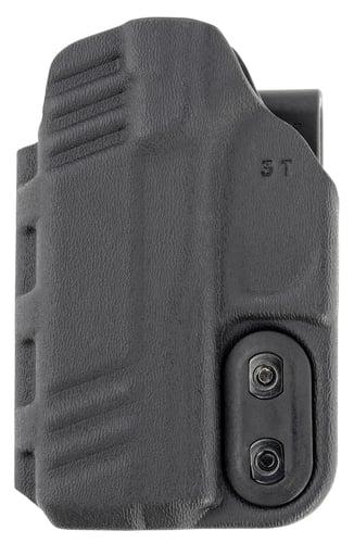 The Slim-Tuk is a new minimal ambidextrous IWB holster fashioned from Kydex sheet. One of the most unique features about this IWB holster is that it uses our tuck-able 360 degree C-Clip, which affords the wearer unlimited mounting options. The hardware can easily be reversed to change from right to left hand. The Slim-Tuk is precision molded and has adjustable tension and a rugged 1.75" nylon clip.