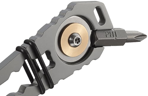 The CRKT Pry Cutter compact keychain multitool is small enough to take with you everywhere; a utilitarian solution to jobs on the go. The Pry Cutter Keychain Tool features several key components from a cord cutter to a bit driver tool, making it as essential as the keys you carry with it. Stainless steel handle withstands hard use; replaceable cord cutter; pry bar section can tackle utility tasks; bottle opener for your favorite beverage; 1/4", 5/16", 3/8" hex wrenches built into the tool and a multi-position O-ring secured PH1 hex bit.